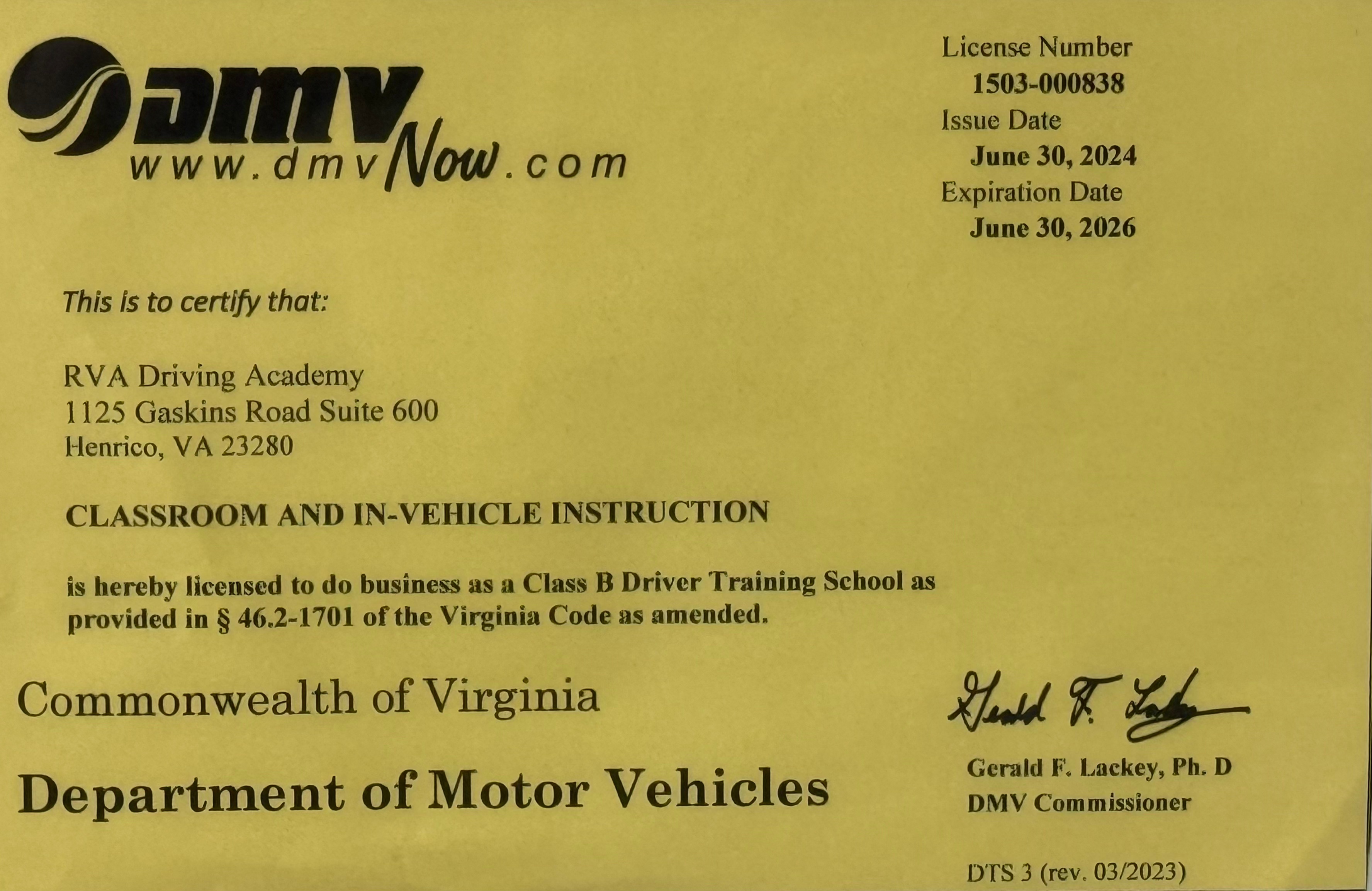 The Virginia DMV now allows adults age 18+ an optional method of achieving a drivers license. Adults may chose to complete the same requirements as a teen driver age <18. These requirements are 36 class periods of Driver Education (classroom phase) and 7 (50 minute sessions) of behind-the-wheel instruction. Each session consists of 50 minutes of driving. During the 7th session we will conduct the DMV road test. Upon successful completion of both phases and the road test we can immediately issue the DMV course completion form DTS-D (Adult License Waiver). We will then mail the certificate of completion to the DMV, who will mail the permanent license to the student.