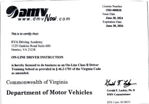 *RVA DRIVING ACADEMY IS FULLY ACCREDITED BY THE VIRGINIA DMV